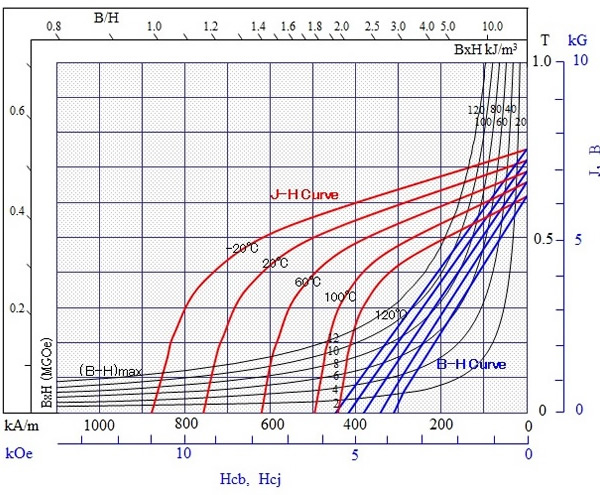 誘導される(B)の大きさは、磁場/電場の(C)に比例し、その方向は磁場/電場の変化に対して(D)である。 A:時間 B:起磁力/起電力 C:変化の割合 D:直角 A:空間 B:起磁力/起電力 C:変化 D:平行 A:時間 B:電場/磁場 C:変化の割合 D:直角 A:空間 B:電場/磁場 C:変化 D:平行 [問題9] 真空の透磁率μ0で正しいのはどれか? 2π x 10-6 (H/m) 2π x 10-7 (H/m) 4π x 10-6 (H/m) 4π x 10-7 (H/m) [問題10] 次の減磁曲線を持つ磁石のパーミアンス係数が0.4のとき、熱減磁(不可逆減磁)